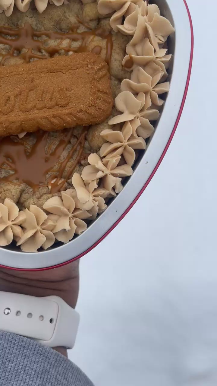❤️Biscoff Ingredients: AP flour, Butter, Salt, Sugar, Brown Sugar, Corn starch, Baking soda, Baking powder, Cinnamon, Vanilla extract, Eggs, White Chocolate Chips, Biscoff cookies, Biscoff Cookie Butter